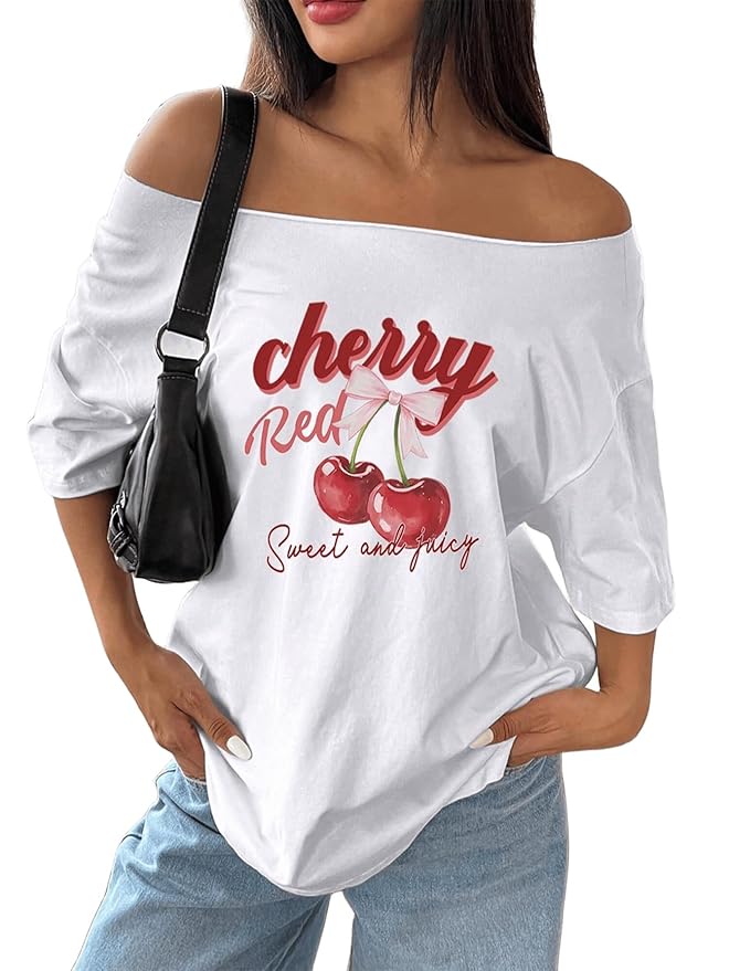 Be the first to review “SXV Women’s Loose Bowknot Asymmetrical Neck T-Shirt, Oversized Cherry Pink & White Y2K Style”